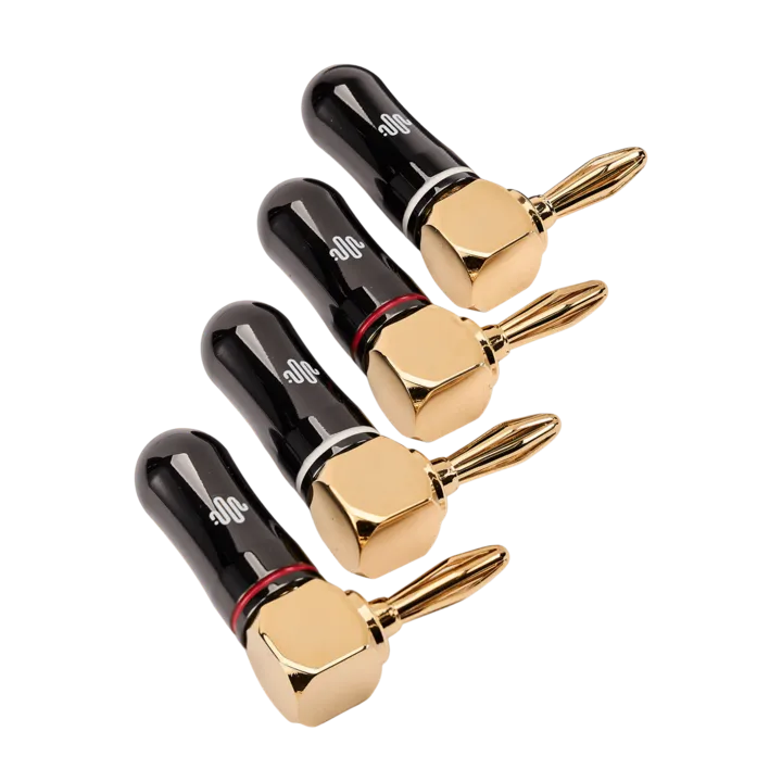 Liitin tarjoaa hyvän kontaktin, ja kaapeli on helppo irrottaa uudelleen, jos sinun täytyy siirtää laitteitasi. Prime Banana Anglen vankka lukitusmekanismi varmistaa optimaalisen kontaktin kaiutin- ja vahvistinterminaaliin, ja kosketuspinnat ovat kullattuja estämään hapettumista, joka ajan myötä heikentäisi kontaktin ominaisuuksia.