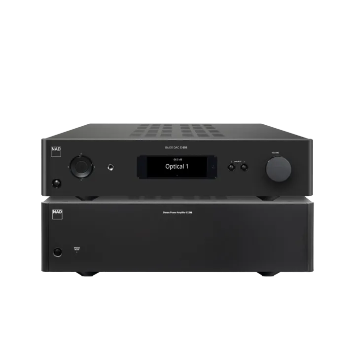 NAD C 658 + C 298 – huippuluokan musiikkilaite Purifi Eigentakt -vahvistimella, 2 x 185 watt ja sisäänrakennettu Bluesound-suoratoisto.